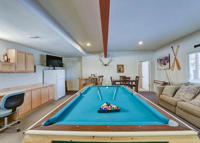 Con vistas a las montañas, la Cabin On 13 Acres With A Pool Table And Jacuzzi Tub Bordenville cuenta con una terraza. Los cuartos de baño también disponen de inodoro separado y ducha. Hay secador de pelo y toallas para la comodidad de los huéspedes.